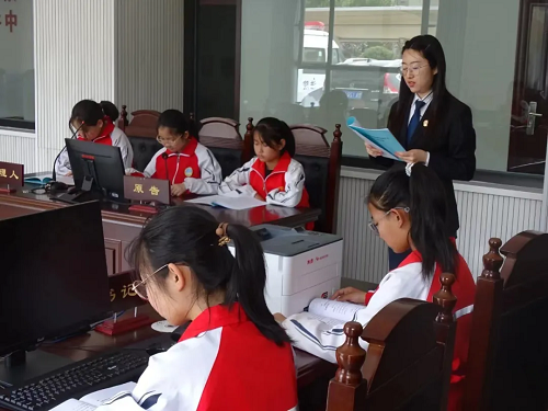 隨后,學生們在審判法庭舉行了模擬法庭活動,他們分別擔任審判長、審判員、書記員、代理人、原被告等不同的法庭角色,法院干警還向大家分發(fā)了《山西法院保護未成年人十大典型案例》,并進行模擬講解。