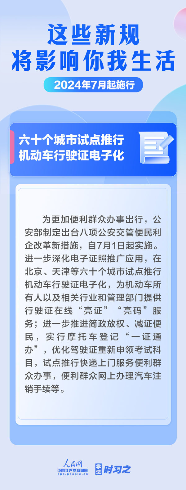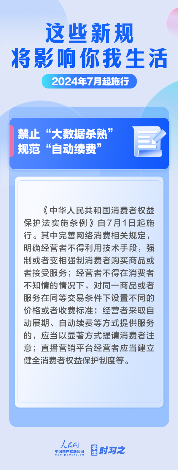 完善注冊資本認繳登記制度;禁止“大數據殺熟”規(guī)范“自動續(xù)費”;在六十個城市試點推行機動車行駛證電子化……7月起,這些新規(guī)施行,將影響你我生活。(薄晨棣)