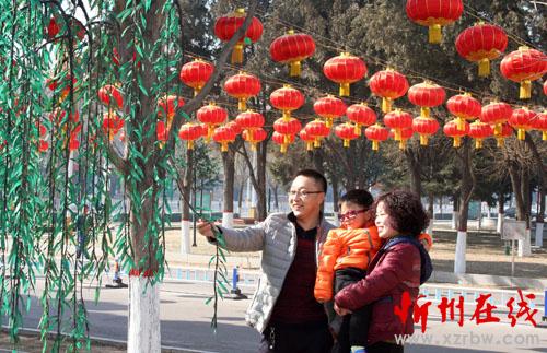 2月8日是大年初一,原平市大街小巷張燈結彩,一派喜慶,市民們正在觀賞街景歡度佳節(jié)。(趙春曉 攝)
