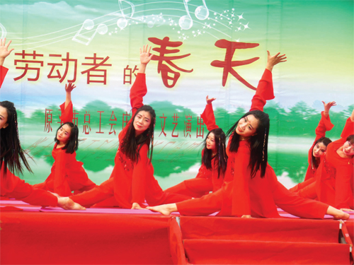 為慶祝即將到來(lái)的五一國(guó)際勞動(dòng)節(jié),原平市總工會(huì)于近日組織各基層工會(huì)的群眾演員赴原平市經(jīng)濟(jì)技術(shù)開發(fā)區(qū),給奮戰(zhàn)在一線的工人師傅送去了精彩的文藝節(jié)目。圖為演出現(xiàn)場(chǎng)。(賈政卿 攝)
