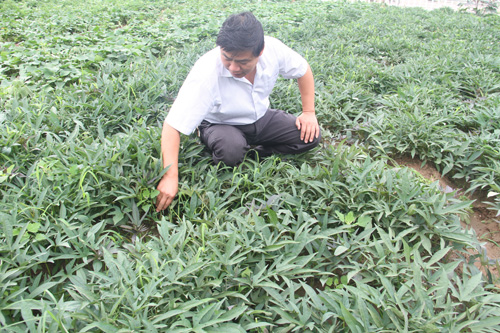 為了充分發(fā)揮紅薯新品種龍薯一號的優(yōu)良中性,加快新品種的推廣步伐。7月20日,原平市農(nóng)業(yè)學校種植科劉主任在實訓基地查看長勢喜人的新品種紅薯。近年來,該校利用新技術(shù)培育脫毒苗進行新作物、新品種的試驗示范,為農(nóng)民脫貧增產(chǎn)增收發(fā)揮了積極作用,拓寬了農(nóng)民致富路子。(褚震 攝)