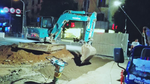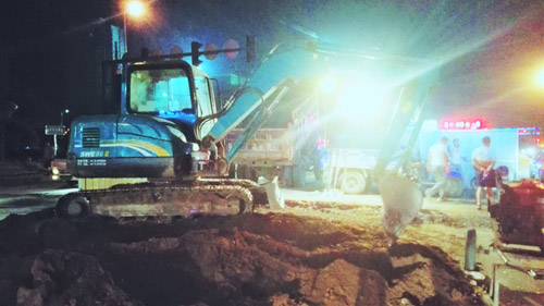 7月26日晚上9多了,原平市政公司干部職工仍然在京原北路與平安大街交匯的十字路口搶修塌陷的路面。該路段是原平的交通要道,車流量大。路面塌陷后,時政公司及時安排連夜切段搶修,不誤車輛通行,把“真抓實干,馬上就辦”體現(xiàn)在實際行動中。(吉建平 攝)