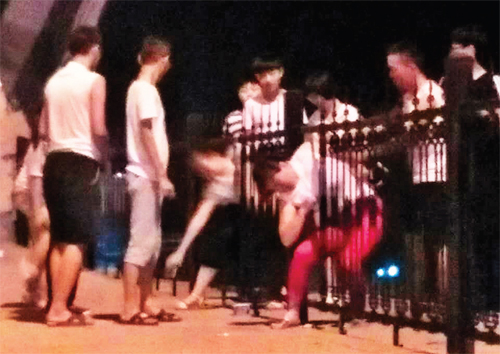 8月9日晚21點左右,在城區(qū)云中河景區(qū)游園乘涼的市民依然絡(luò)繹不絕。一群十五六歲學生模樣的青年將幕山橋上的鐵柵欄分開,一個個鉆過隔離欄魚貫而出,引來橋上欣賞夜景的市民們一片譴責之聲。