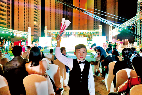 月光皎潔,清輝遍灑,這夜雖是農歷八月十三,月亮卻已迫不及待地圓了起來。花好月圓、春花秋月、花前月下……月宮是神話中的仙境,而此時泛華酒店的后花園里也如仙境一般,琴、詩、書法共同演繹《春江花月夜》,讓現場的500余名觀眾如癡如醉。面容清秀、刺繡大紅旗袍在身的琴師端坐在舞臺的左側,雙手拂動,琴聲綿綿,舒心悅耳;鋪紙、執(zhí)筆、蘸墨、揮毫,舞臺中央的呂峰仿佛置身自家書房之中,墨香中三幅書法作品轉瞬完成;“醉眼看世界,朦朧看人生……李白醉了,醉了!”舞臺右側的朗誦者孫美琴將李白的一生揉碎在他的詩中,就著朦朧的月色,用獨特的聲線摻在她的情感中,沉醉了自己,也迷醉了觀眾。