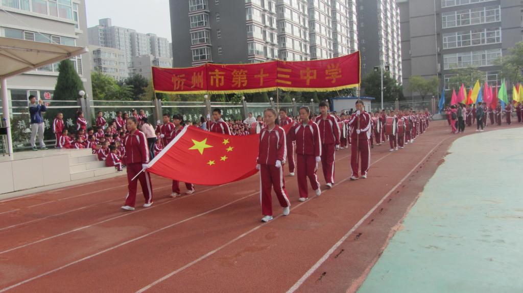 沐浴著秋天的朝陽(yáng),享受著清爽的秋風(fēng)。9月28日上午,忻州市第十三中學(xué)第十一屆秋季運(yùn)動(dòng)會(huì)開幕式在學(xué)校操場(chǎng)隆重舉行。伴隨著激昂的運(yùn)動(dòng)員進(jìn)行曲,國(guó)旗隊(duì)、鼓樂(lè)隊(duì)、彩旗隊(duì)、裁判員代表和運(yùn)動(dòng)員方隊(duì)秩序井然而又氣勢(shì)磅礴地走入會(huì)場(chǎng)。在莊嚴(yán)的國(guó)歌聲中,全體師生凝神肅立,齊唱國(guó)歌。鮮艷的五星紅旗在操場(chǎng)上冉冉升起。