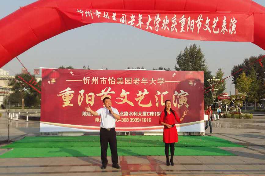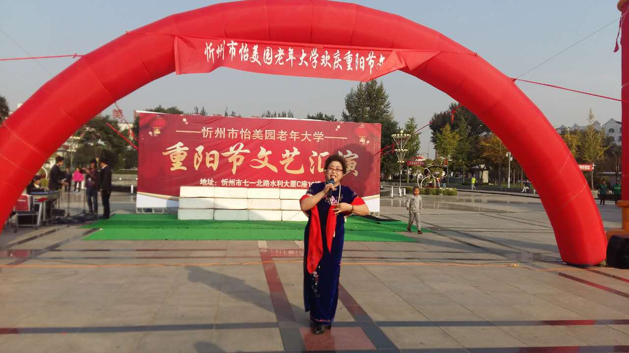 “唱歌跳舞樂享燦爛人生,揮毫潑墨續(xù)寫昔日輝煌?!睘榇罅霌P(yáng)中華民族尊老愛老的傳統(tǒng)美德,積極培育和踐行社會(huì)主義核心價(jià)值觀,營(yíng)造“敬老、尊賢、守孝”的濃厚氛圍。10月9日,農(nóng)歷九月初九“重陽(yáng)節(jié)”,忻州市怡美園老年大學(xué)在和平廣場(chǎng)舉辦了文藝匯演活動(dòng),以歌舞、演唱、小品、朗誦等表演為全市老年朋友送上節(jié)日祝福。