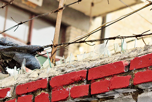 近日,市民向本報(bào)反映,位于城區(qū)利民西街北三巷靠近和平街的某單位宿舍臨街圍墻上,布滿鐵絲網(wǎng)和碎玻璃,影響市容市貌,建議用監(jiān)控系統(tǒng)取而代之。