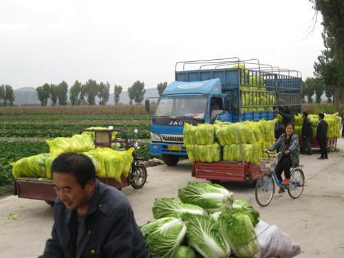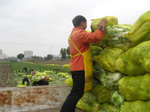 10月23日,河曲縣南園村大白菜種植戶忙著砍白菜、撕老幫、裝袋子,幫助內(nèi)蒙古準(zhǔn)格爾旗、伊金霍洛旗和本縣沙泉鄉(xiāng)的客戶裝白菜,熱鬧中洋溢著豐收的喜悅。該村充分利用土肥水富、交通便利等優(yōu)越條件,大力發(fā)展蔬菜產(chǎn)業(yè),形成了“一村一品”產(chǎn)、供、銷格局,成為晉陜蒙交匯地區(qū)蔬菜基地。特別是近千畝優(yōu)質(zhì)大白菜深受縣內(nèi)外經(jīng)銷商和消費(fèi)者青睞,每年霜降前后,周邊市縣前來(lái)購(gòu)買(mǎi)的菜販絡(luò)繹不絕。(賈金理攝)