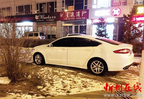 12月15日,記者途經(jīng)市區(qū)團結西街和建設北路交叉路口,在東南角看到一輛白色轎車停在路邊的綠化帶上,碾壓草地,讓人心疼。