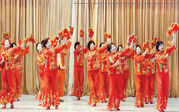 近日,原平市舉行群眾新年文藝聯(lián)歡活動,來自社區(qū)、鄉(xiāng)村、小區(qū)的25支群眾文藝社團通過大合唱、廣場舞、雙人舞、扇子舞、男女聲二重唱、戲曲、旗袍秀、秧歌舞、拉丁舞、水兵舞等多種多樣的表演形式,齊頌祖國好,齊夸祖國興旺發(fā)達的喜人局面和人民幸福安康的好光景。圖為北城京原社區(qū)舞蹈隊正在表演廣場舞《紅紅火火大中華》(藺紅 褚震 攝)