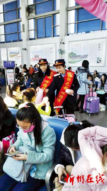 春運第一天,忻州站為確保今年春運旅客運輸組織的安全有序,實現(xiàn)“平安春運、有序春運、溫馨春運”的目標,全面部署,優(yōu)化組織流程,強化重點崗位配置,制訂了相關(guān)應(yīng)急預案,在人力、物力等方面做足了充分準備。圖為工作人員為旅客送水(志遠/文 明強/圖)