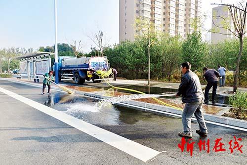 10月12日,在建設(shè)路北拓路段,工人們正在加班加點(diǎn)認(rèn)真清洗打掃道路。最近幾天,忻州城區(qū)新修道路和新改造道路建設(shè)工程相繼竣工通車(chē),市市容環(huán)境衛(wèi)生管理處和市園林管理局組織人員及時(shí)清洗道路塵埃,處處呈現(xiàn)出街寬路闊潔凈新貌。魯明強(qiáng) 攝