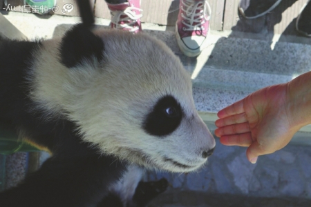 她如何摸到大熊貓寶寶?