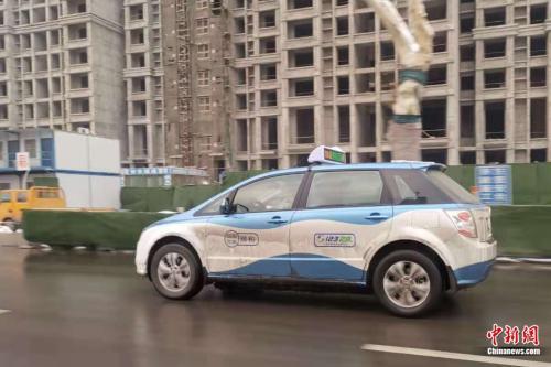 河南安陽(yáng),路上行駛的新能源出租車。張旭 攝