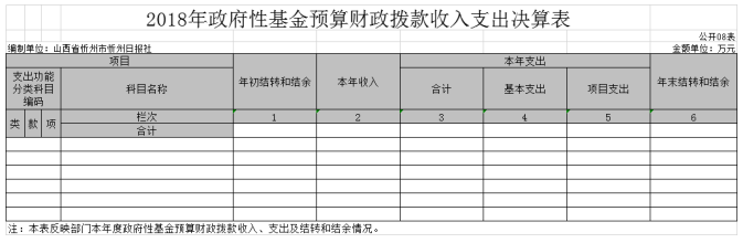 (五)政府性基金決算情況:忻州日?qǐng)?bào)社不涉及政府性基金,故政府性基金決算支出為0.