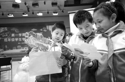 1月7日,北京市崇文小學(xué)二年級(jí)舉行期末學(xué)業(yè)測(cè)評(píng),在“試題自選超市”里,語數(shù)外等科目被設(shè)計(jì)成水果、文具、生活用品等形式的“試卷商品”,學(xué)生在這里輕松愉快地挑選適合自己的“商品”——不同難易級(jí)別的試題。本報(bào)記者