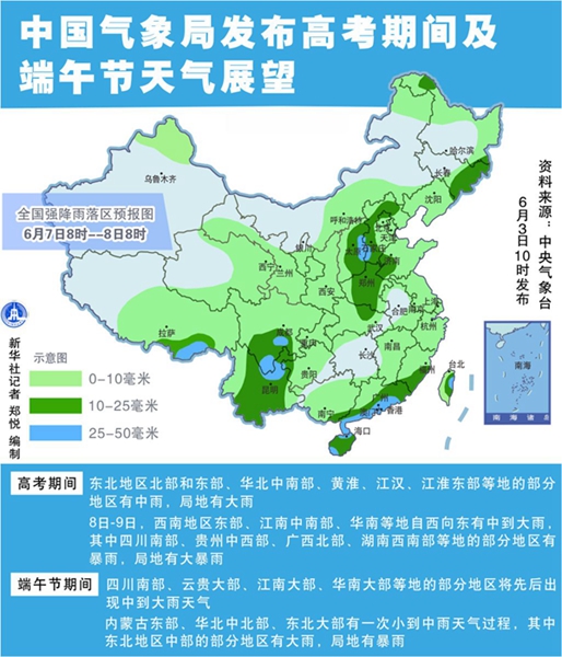 | 中國(guó)氣象局發(fā)布高考期間及端午節(jié)天氣展望 |