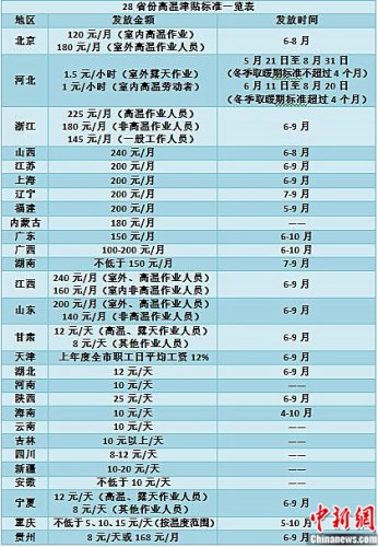 28省份高溫津貼標(biāo)準(zhǔn)一覽表 張尼制