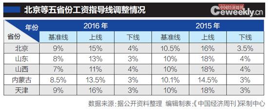 在下線方面,北京由3.5%上調(diào)為4%,山東由4%降為3%,天津、山西和內(nèi)蒙古的下線與2015年持平:天津3%,山西4%,內(nèi)蒙古3%。