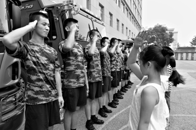 “叔叔,這是干什么用的?” 樂樂拿起一個面罩轉了幾圈?!斑@個叫防毒面具,可以防止毒氣、煙霧進入鼻子和嘴巴?!币幻绬T戰(zhàn)士告訴樂樂,在發(fā)生火災時,為了防止毒氣、煙霧吸入口中,小朋友們可以用濕毛巾代替,把濕毛巾對折捂住嘴巴和鼻子?!懊泶驖窈笞詈蒙晕Q一下,讓毛巾不滴水,這樣防毒的效果最好?!?/p>