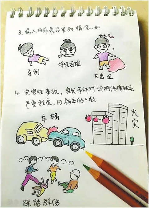 說起畫這套漫畫的原因,何瑾說,這是從實(shí)際的工作出發(fā)得來的。有不少人不清楚怎么撥打120急救電話,有的人對撥打120的相關(guān)要求并不是很了解,想象和實(shí)際上還是有差距,通過漫畫,讓更多的人了解正確撥打120急救電話的方法和步驟。(華西城市讀本記者陳伯強(qiáng) 受訪者供圖)