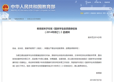 目前學(xué)校實(shí)行的相關(guān)體測(cè)標(biāo)準(zhǔn)依據(jù)的是2014年教育部印發(fā)的《國(guó)家學(xué)生體質(zhì)健康標(biāo)準(zhǔn)》。 網(wǎng)絡(luò)截圖