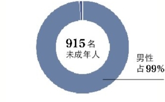 廣東省檢察機關2013年至2015年受理移送審查起訴校園暴力案件涉罪未成年人915人,男性占99%