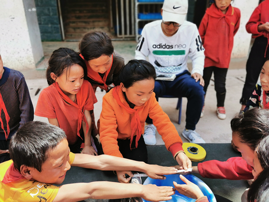 高亮在幫阿波覺村愛慕小學(xué)的學(xué)生進(jìn)行體測。高亮/供圖