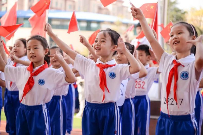 2023年10月12日,在山東省青島市城陽(yáng)區(qū)第二實(shí)驗(yàn)小學(xué),學(xué)生們?cè)谇锛具\(yùn)動(dòng)會(huì)開(kāi)幕式上進(jìn)行才藝展演。通訊員 張鷹 攝