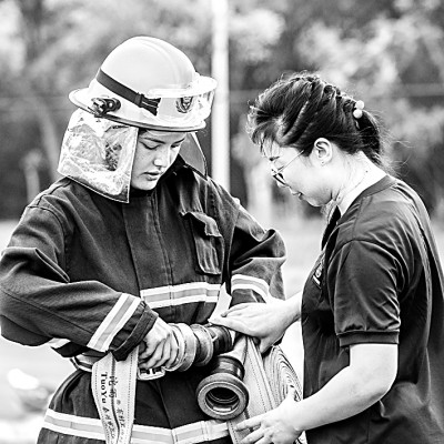 重慶電訊職業(yè)學院建筑消防專業(yè)(三年制)大二學生在輔導(dǎo)員指導(dǎo)下進行訓練。新華社發(fā)