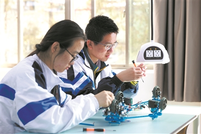 結(jié)合時(shí)代發(fā)展特點(diǎn)和學(xué)生未來(lái)成長(zhǎng)需要,上海中學(xué)的教師們自主開發(fā)設(shè)計(jì)了數(shù)學(xué)、物理、化學(xué)等領(lǐng)域的大學(xué)先修課程,供有興趣的學(xué)生選學(xué)。最近,學(xué)校還在科技班、工程班融合大STEM概念(科學(xué)、技術(shù)、工程和數(shù)學(xué)教育形成有機(jī)整體,培養(yǎng)學(xué)生創(chuàng)新精神與實(shí)踐能力)基礎(chǔ)上,將勞動(dòng)技術(shù)課程設(shè)置為機(jī)械設(shè)計(jì)與制造基礎(chǔ)、電子技術(shù)、開源硬件及傳感器基礎(chǔ)等12個(gè)模塊,供高一、高二年級(jí)全體學(xué)生選學(xué)。(于珍 任朝霞)