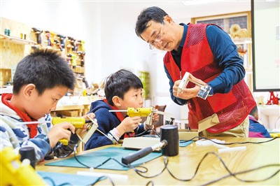 “一課難求”的場面讓陳少華頗為感慨?!皞鹘y(tǒng)的學(xué)??破罩饕呛D?、空模、車模‘三?!?,科技含量不高。隨著科技的發(fā)展,孩子們需要更多了解現(xiàn)代化的互聯(lián)網(wǎng)技術(shù)?!标惿偃A說,做好創(chuàng)新教育要有開放的思維、開放的器材、開放的場景,這樣才能培養(yǎng)學(xué)生的創(chuàng)新意識。