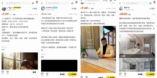 大賽期間,學生們掛出了監(jiān)督學習、口語練習、妝造設計等豐富的特色商品。網(wǎng)絡截圖