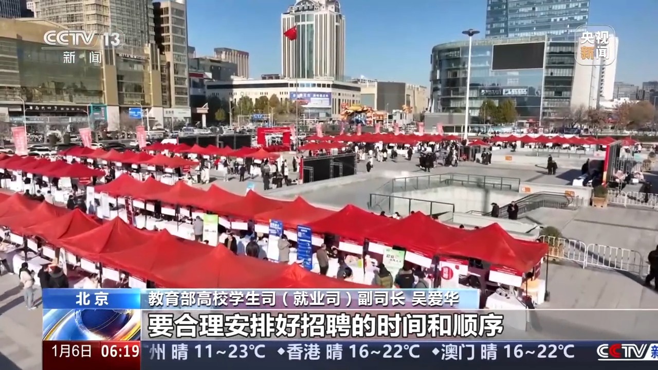 教育部高校學(xué)生司(就業(yè)司)副司長 吳愛華:大學(xué)生比較關(guān)心的首先是政策性崗位,要合理安排好招聘的時(shí)間和順序,公務(wù)員、事業(yè)單位、國有企業(yè),還有軍隊(duì)的征兵入伍、基層項(xiàng)目等,政策性的崗位能招盡招,能早招,盡量早一點(diǎn)招,這樣給畢業(yè)生到市場上的求職留出足夠的時(shí)間。