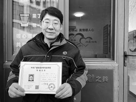 聽說學(xué)員通過考試后可以獲得國(guó)家承認(rèn)的成人中專畢業(yè)證書,學(xué)習(xí)費(fèi)用全部由街道補(bǔ)貼,蔣風(fēng)登立刻動(dòng)了心。在工作人員的幫助下,他報(bào)名學(xué)習(xí)計(jì)算機(jī)應(yīng)用專業(yè),開始了半工半讀的生活。晚上下班回到家,他一遍遍地刷著網(wǎng)課;白天,他利用送快遞的間隙鞏固知識(shí)點(diǎn)。經(jīng)過一年的學(xué)習(xí),2024年3月,他順利拿到了畢業(yè)證。