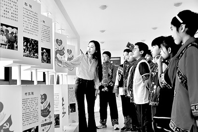 江蘇省如皋經(jīng)濟技術開發(fā)區(qū)第三實驗小學“紅石榴家園”,統(tǒng)戰(zhàn)部門工作人員向?qū)W生介紹各民族文化習俗。吳樹建攝/光明圖片
