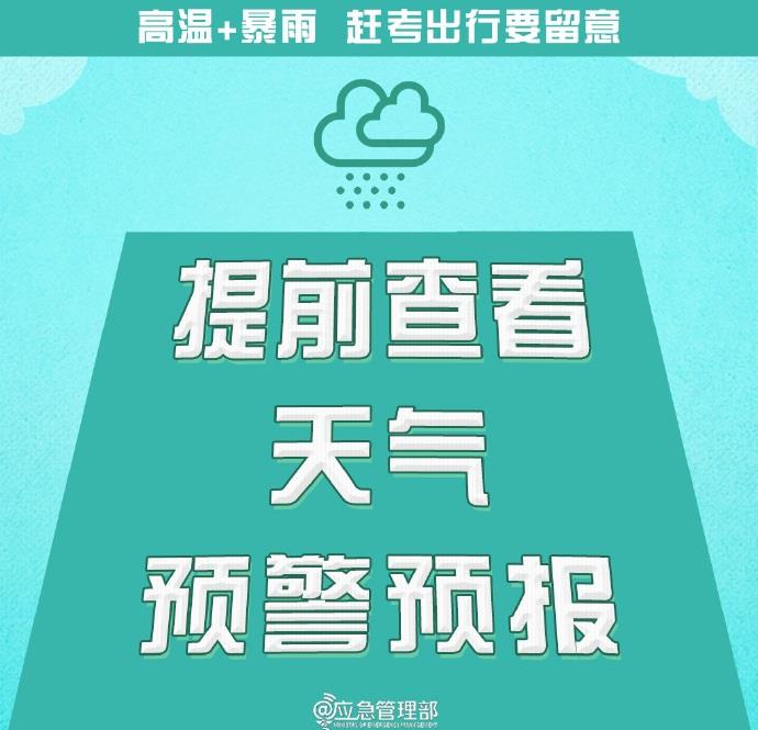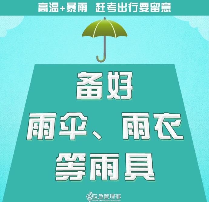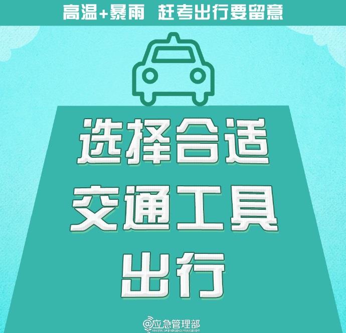| @高考生 防范高溫暴雨 趕考出行這些事項要留意 |