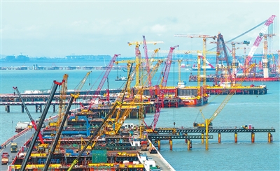 廈金大橋(廈門段)海上橋梁大規(guī)模裝配化施工現(xiàn)場。新華社記者 魏培全攝