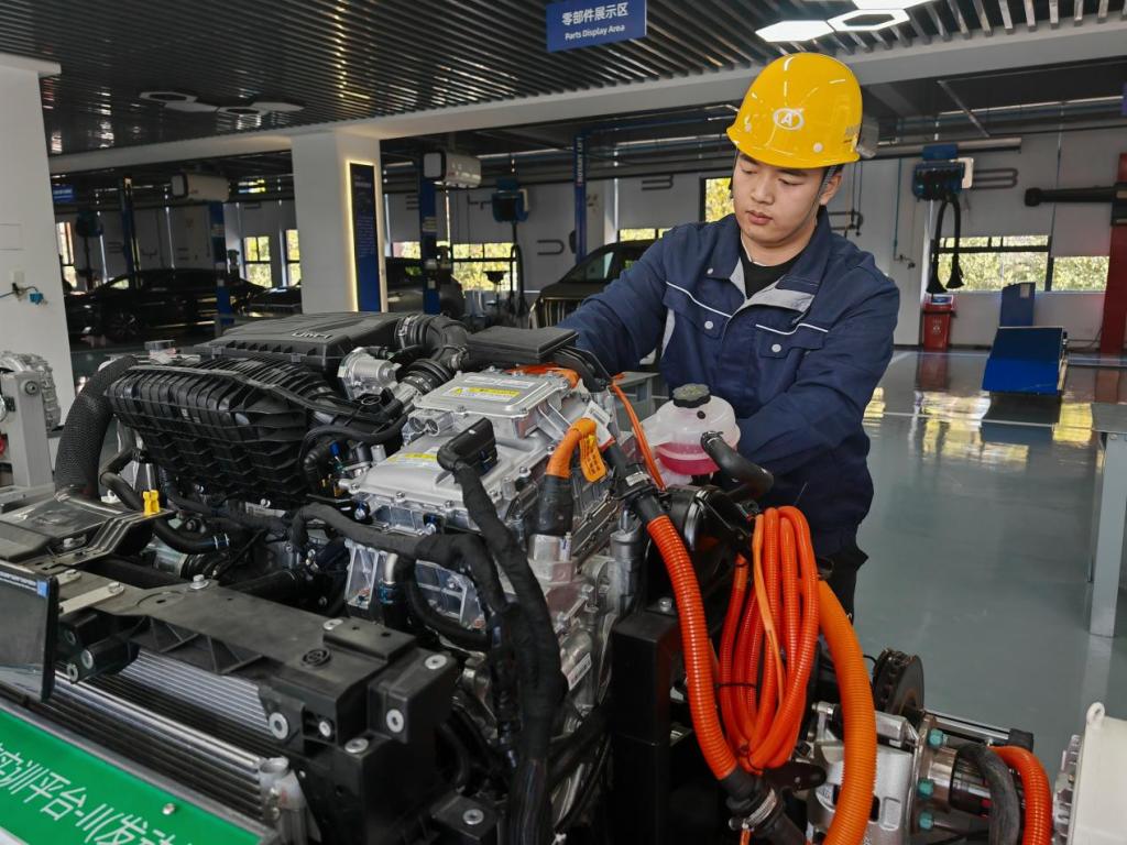 為支撐新能源汽車(chē)產(chǎn)業(yè)崛起,河南省全省高職院校開(kāi)設(shè)相關(guān)專(zhuān)業(yè)點(diǎn)419個(gè),相關(guān)在校生22.14萬(wàn)人。在河南機(jī)電職業(yè)學(xué)院與比亞迪共建的現(xiàn)場(chǎng)工程師學(xué)院,圍繞“現(xiàn)場(chǎng)工程師”培養(yǎng)開(kāi)發(fā)了37門(mén)項(xiàng)目化課程。該校每年向鄭州航空港區(qū)比亞迪工廠(chǎng)輸送1000余名技能人才,不少學(xué)生迅速成長(zhǎng)為產(chǎn)線(xiàn)骨干?!皩W(xué)校通過(guò)‘項(xiàng)目+人才’雙交付育人模式,極大地增強(qiáng)了人才培養(yǎng)與企業(yè)需求的匹配度?!北葋喌峡傃b車(chē)間主任如是說(shuō)。