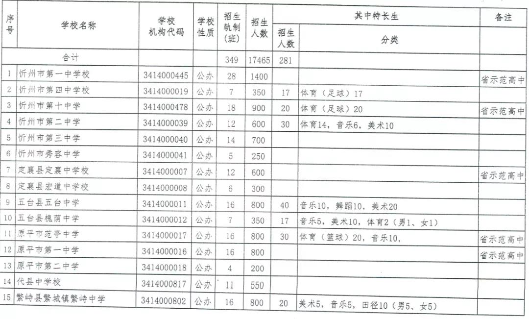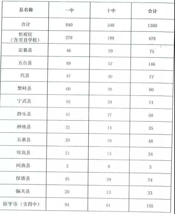 2.忻州市2020年忻州一中、十中招生指標(biāo)分縣計劃