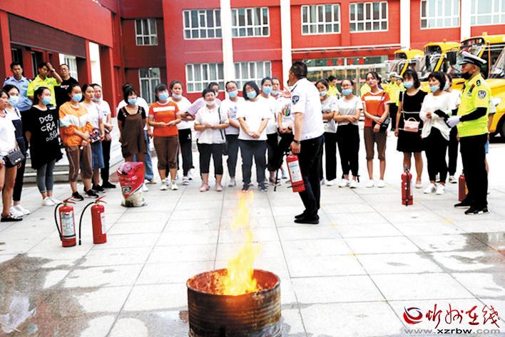 本報訊 為扎實(shí)做好校車消防安全工作,進(jìn)一步提高識險、避險意識,杜絕重大安全事故的發(fā)生,7月31日,河曲縣教育系統(tǒng)在長城小學(xué)組織開展全縣校車消防安全培訓(xùn)暨校車應(yīng)急演練活動。縣教科局、公安局、交警隊、應(yīng)急局相關(guān)負(fù)責(zé)人,有校車的幼兒園負(fù)責(zé)人及司機(jī)、跟車人員、班主任參加了活動。