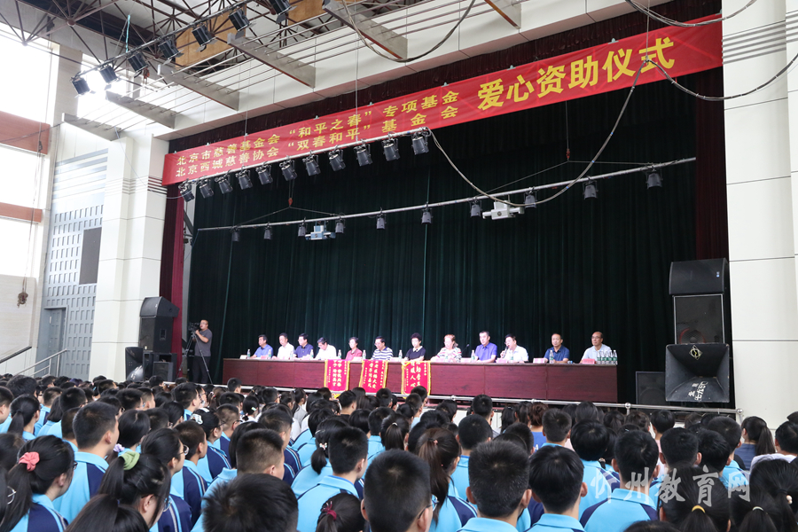 8月23日,北京市慈善基金會(huì)“和平之春”專項(xiàng)基金、北京西城慈善協(xié)會(huì)“雙春和平”基金資助儀式在忻州十中舉行。北京市慈善基金會(huì)“和平之春”專項(xiàng)基金創(chuàng)立者、出資人,北京西城慈善協(xié)會(huì)“雙春和平基金”創(chuàng)始人、出資者徐雙春、殷和平夫婦,原北京西城慈善協(xié)會(huì)副會(huì)長(zhǎng)、愛心大使陳華,原忻州市市委常委、市政府常務(wù)副市長(zhǎng)王學(xué)英,忻州市教育局黨組書記、局長(zhǎng)劉新明,中共忻州市教育系統(tǒng)工委副書記高光洲,忻州市教育局辦公室主任湯永斌及忻州十中校領(lǐng)導(dǎo)出席了資助儀式。