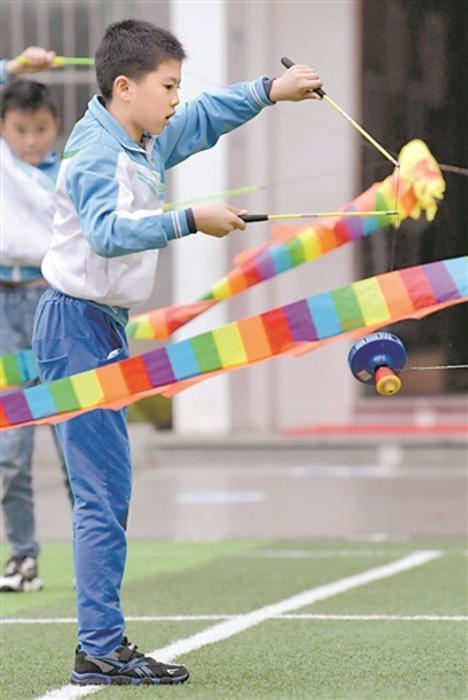 10月19日,在江西省南昌市東湖區(qū)向榮小學(xué),學(xué)生在練習(xí)抖空竹。新華社記者 彭昭之 攝