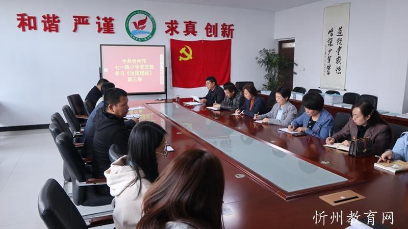 忻州市七一路小學網(wǎng)訊:10月19日,中共忻州市七一路小學黨支部專題學習《習近平談治國理政》第三卷。黨支部書記靳茂文作專題報告,全體黨員參加了會議,會議由黨辦主任史小榮主持。