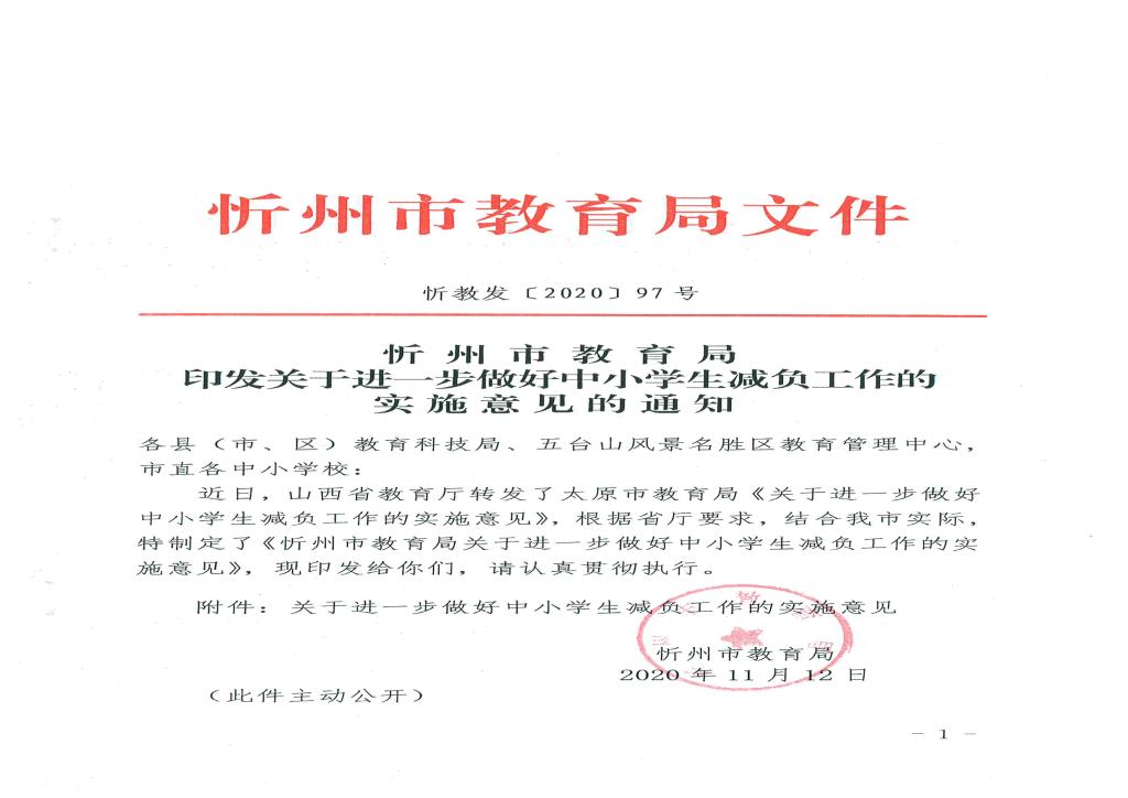 忻州市教育局印發(fā)關(guān)于進(jìn)一步做好中小學(xué)生減負(fù)工作的實施意見的通知