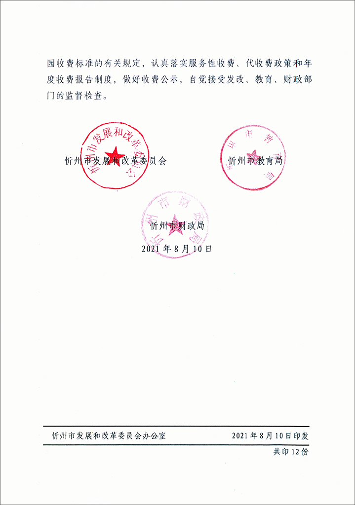 關(guān)于調(diào)整忻州市幼兒園和實驗幼兒園保育教育費收費標(biāo)準(zhǔn)的通知