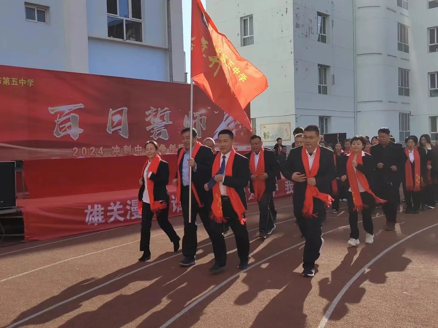 趙俊瑞校長表示,在去年學(xué)校中考取得了優(yōu)秀的成績,號(hào)召全體師生發(fā)揚(yáng)釘子精神,奮斗一百天,決勝一百天,勉勵(lì)在場同學(xué)們堅(jiān)定決心,不畏艱難,堅(jiān)持到底,激勵(lì)全體師生團(tuán)結(jié)一致,開拓創(chuàng)新,努力奮斗,以科學(xué)的方法和良好的心態(tài)決勝中考戰(zhàn)場?!褒埿旋擙搯⑿鲁蹋俺?hào)T朤向未來”,攻堅(jiān)克難,千錘百煉。風(fēng)雨兼程,無畏前行,在高質(zhì)量發(fā)展的道路上奮勇前進(jìn)。