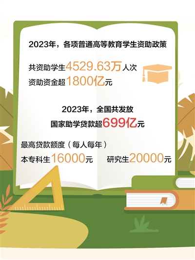 《2023年中國學(xué)生資助發(fā)展報(bào)告》顯示,2023年,政府、高校及社會的各項(xiàng)普通高等教育學(xué)生資助政策共資助學(xué)生4529.63萬人次,資助資金1854.38億元。