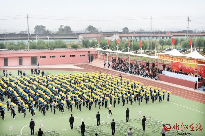 9月27日上午10點整,寬闊的綠茵操場上,彩旗飄揚,鼓樂喧天。由700多名小學生組成的整齊的方陣,在環(huán)形跑道上健步前行。鮮花舞動,口號震天??磁_上人頭攢動,掌聲如潮……這是繁峙縣教育科技局在筆峰小學組織召開的全縣農(nóng)村寄宿制小學課程改革交流研討暨培訓活動七大程序中的第三項內(nèi)容——文體藝術成果大型展示的入場式。