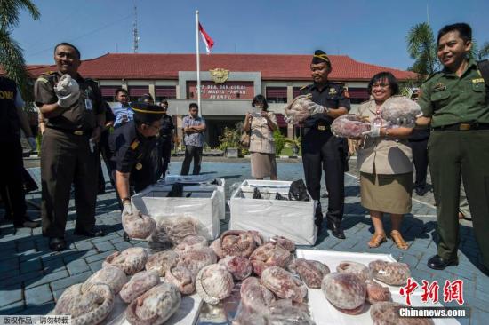 資料圖:當(dāng)?shù)貢r(shí)間2015年7月8日,印尼泗水,印尼海關(guān)官員查獲一批1.3噸將被運(yùn)往新加坡的冷凍穿山甲并焚燒銷毀。